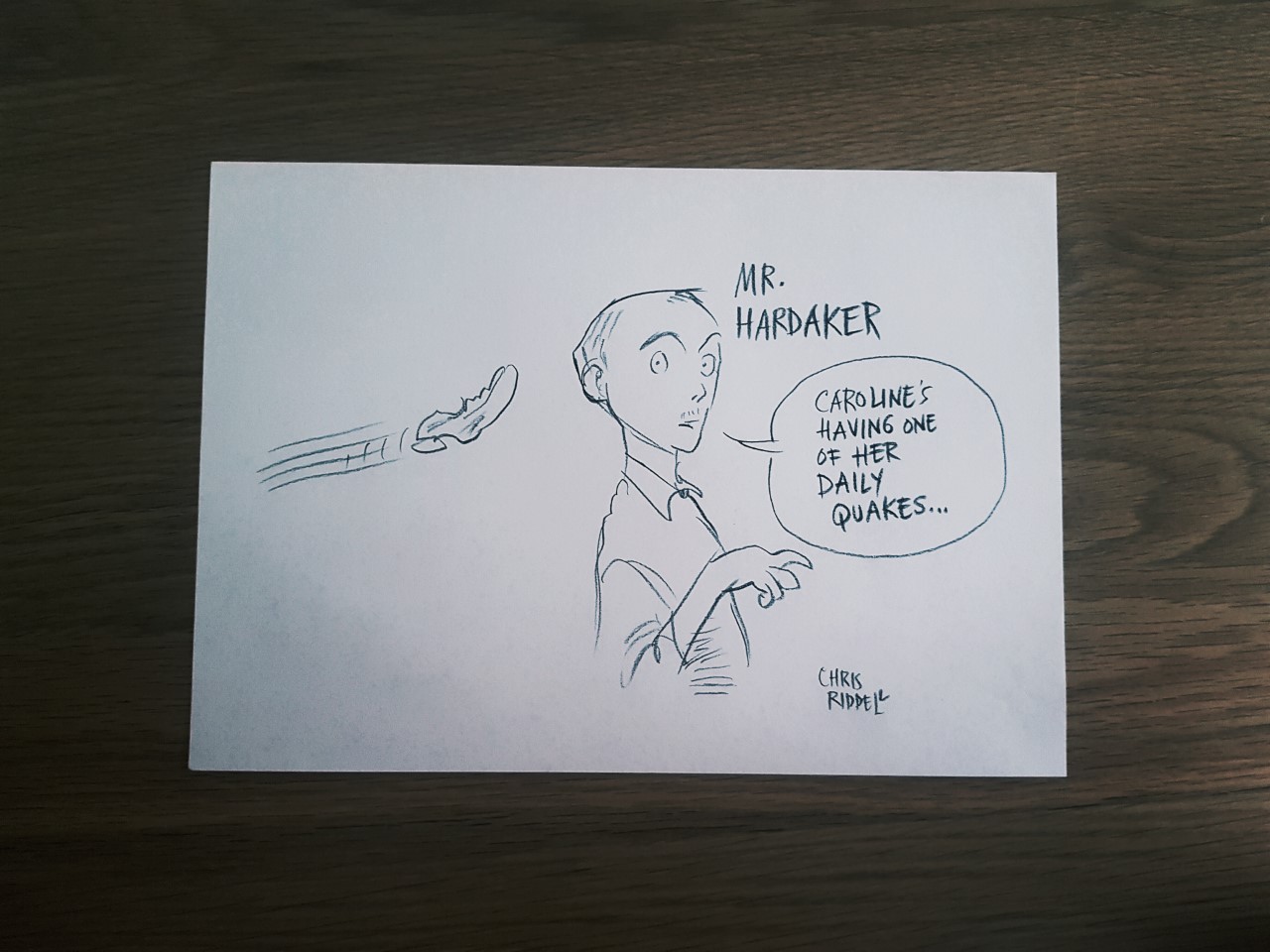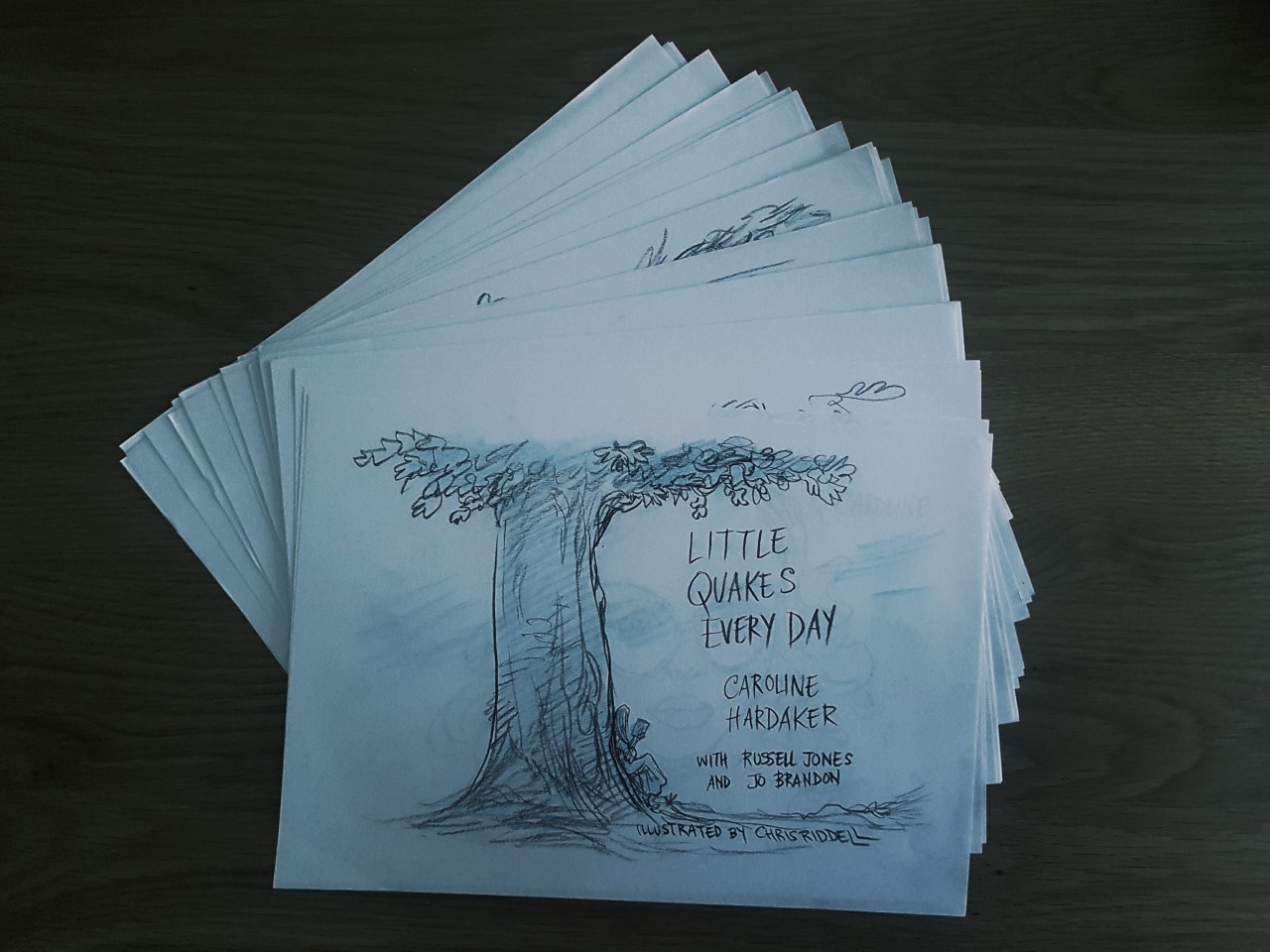 It was all the original illustrations from Chris Riddell’s role in my launch for Little Quakes Every Day last month – every single one. There were lots. And every single one is a gem. Currently trying to decide which ones to frame – I think I might have to rotate them around so I get to display them all at some point.