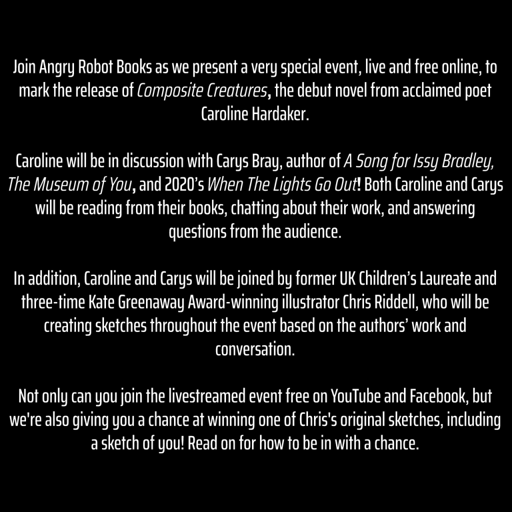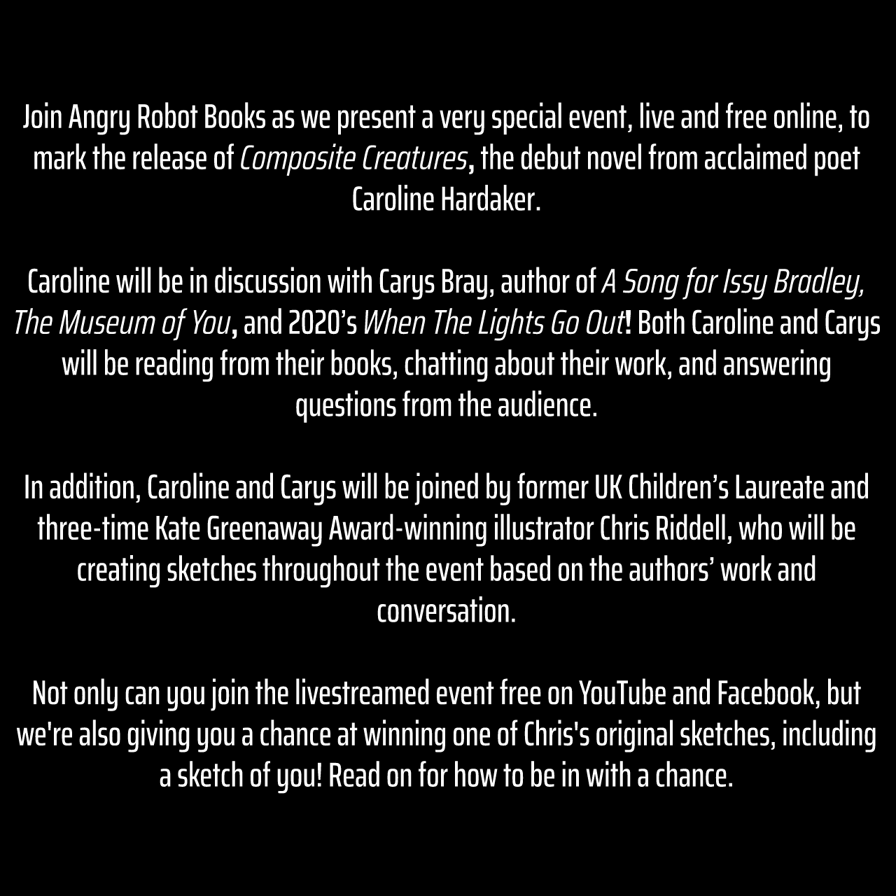 This free online event will feature myself in conversation with Carys Bray, and the whole thing will be live illustrated by the incredible Chris Riddell!