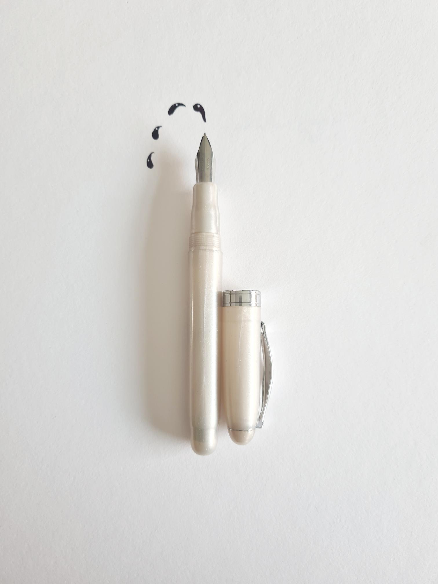 As it was early in my pen journey, I chose something affordable and easy to look after. This Noodlers Ahab Flex Fountain Pen in Ahab’s Pearl felt lovely in my hand and shone as clean as a bone. It’s not my most reliable pen – it’s a bit leaky – but to be honest I’m sure it’s tweakable with a bit of effort.