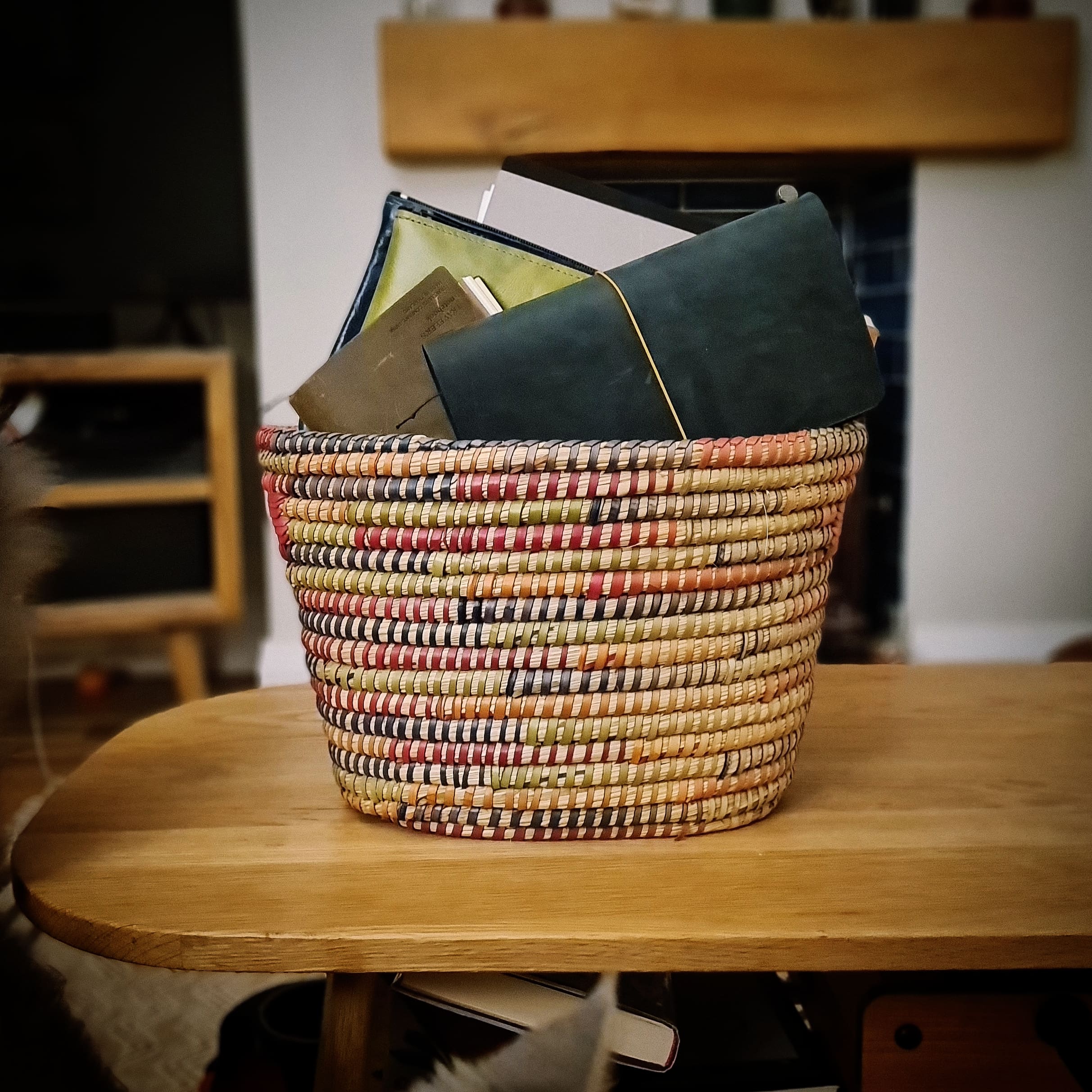 Sometimes things in life get ‘squished’. Since having a baby, we’ve had to move things around in our home and shift our routines. Everything is transient. New. Changed. And for a little while, my office has been relegated to this little basket, hidden by the side of the sofa.